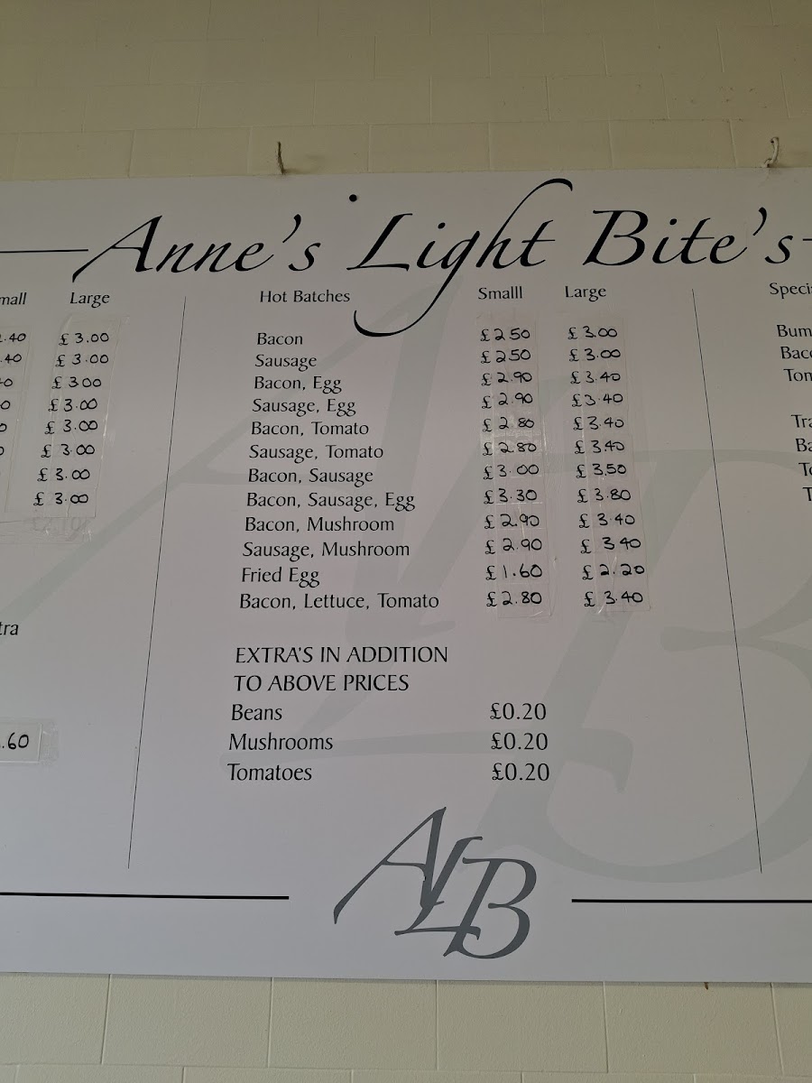 The menu at Ann's Lite Bites is centered around breakfast and light meals, featuring a variety of hot batches and simple accompaniments. This includes options such as bacon, sausage, eggs, and mushrooms, often combined in different arrangements to suit various preferences. Each hot batch is priced individually, with additional sides like beans, mushrooms, and tomatoes available for customization.